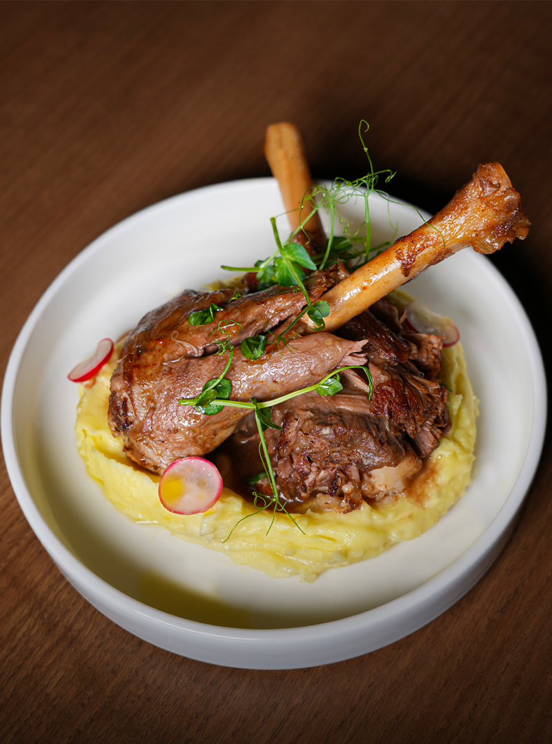 1980Pečeni vrat od mangulice sa pire krompirom i glaziranim crnim lukom